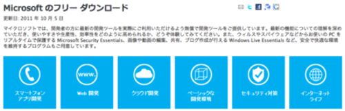 マイクロソフトのフリー開発ツールのダウンロードページ。 Microsoft のフリー ダウンロード | MSDN Web Matrix や Visual C# Express 等を押しのけて、Windows Phone SDK がトップにリストされてます。^^; 無償開発ツール トップはスマートフォンアプリ開発…
